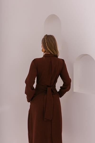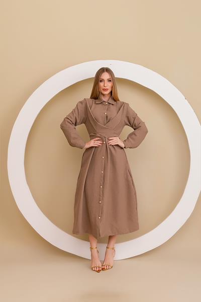 Apresentamos este lindo vestido longo confeccionado em linho, um tecido elegante e encorpado que traz um toque natural e sofisticado à peça. O modelo conta com mangas longas, gola tradicional, detalhe transpassado na cintura que valoriza a silhueta e botões frontais perolados, que completam o visual com delicadeza.
