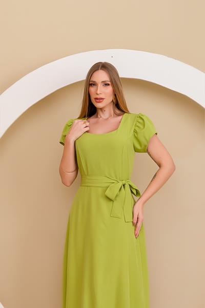 Vestido elegante no tamanho GG, veste perfeitamente um manequim 46. Confeccionado em tecido leve com ótimo caimento, possui decote quadrado que valoriza o colo, mangas curtas bufantes e uma faixa na cintura que destaca a silhueta com charme e feminilidade. A modelagem fluida traz movimento à peça, tornando-a ideal para ocasiões especiais ou eventos durante o dia. A cor verde vibrante acrescenta modernidade e sofisticação ao look. Uma escolha perfeita para quem busca estilo, conforto e elegância.