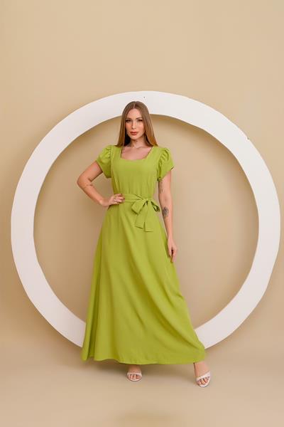 Vestido elegante no tamanho GG, veste perfeitamente um manequim 46. Confeccionado em tecido leve com ótimo caimento, possui decote quadrado que valoriza o colo, mangas curtas bufantes e uma faixa na cintura que destaca a silhueta com charme e feminilidade. A modelagem fluida traz movimento à peça, tornando-a ideal para ocasiões especiais ou eventos durante o dia. A cor verde vibrante acrescenta modernidade e sofisticação ao look. Uma escolha perfeita para quem busca estilo, conforto e elegância.